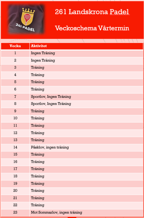 Hos oss på Landskrona Padelklubb är träning mer än bara fysisk aktivitet – det är en möjlighet att bli en del av en stark gemenskap. Vi uppmuntrar till samarbete och respekt både på och utanför banan, och vi strävar efter att alla våra medlemmar ska känna sig välkomna och inkluderade. Genom att delta i våra träningar blir du en del av en klubb där vi stödjer varandra, firar framgångar tillsammans, och framför allt har kul med padel.